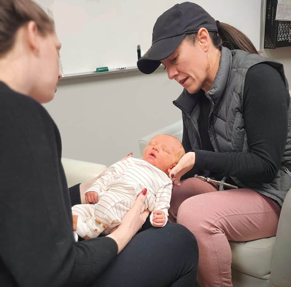 Jaycen has been adjusted since he was 2 days old! He had trouble latching for the first few weeks but is now exclusively breastfed. He gets adjusted once a week now – it always helps him full his diaper if he’s struggling to go. If you have any questions just ask us next time you’re in the office!